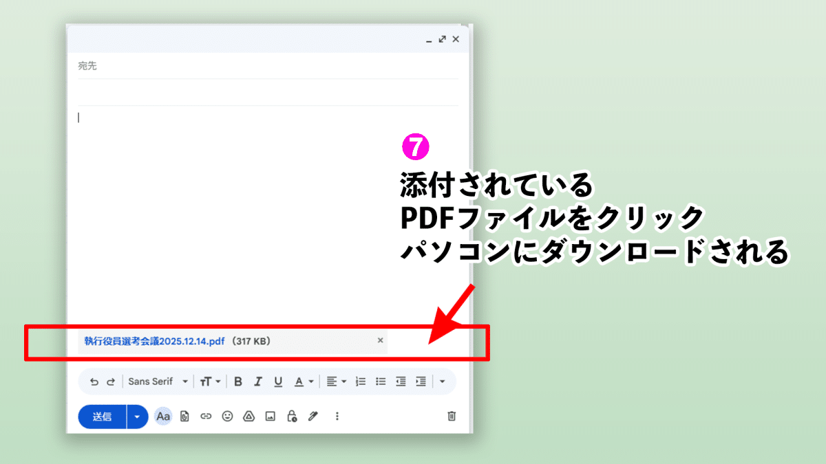 ⑦添付されているPDFファイルをパソコンにダウンロードする