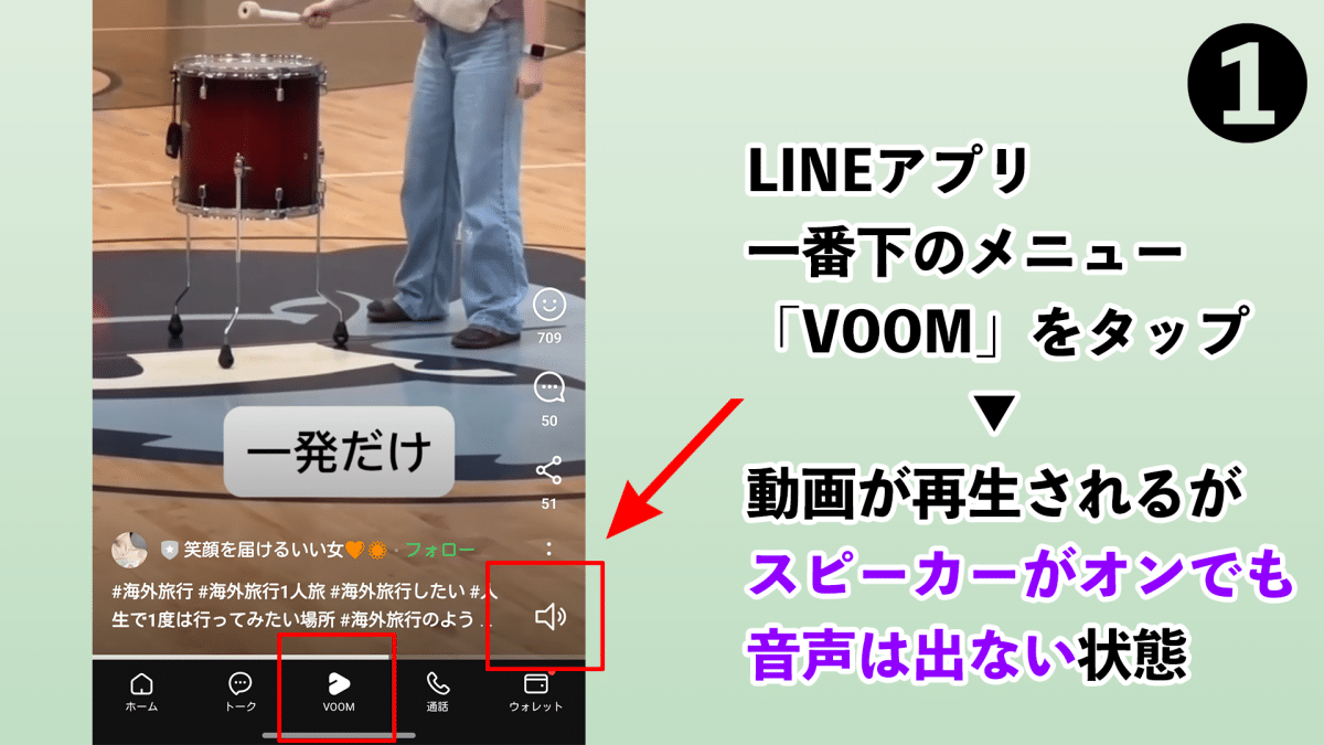 手順1)LINEアプリを開き、「VOOM」をタップ