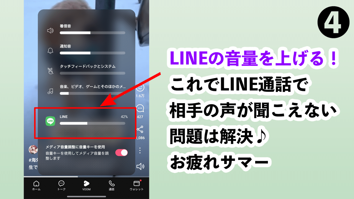 LINEの音量バーを上げる、これで解決です!